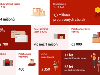 8.2. - Loňský rok byl pro skupinu Packeta, do které patří i česká logistická firma Zásilkovna, rekordní. Počet doručených zásilek narostl meziročně o 40 milionů. Packeta dál výrazně rozšiřovala svou síť výdejních boxů v Česku, na Slovensku i v Maďarsku, a tak překonala milník jednoho milionu schránek. Růst sítě odráží sílící poptávku zákazníků, kteří chtějí sami rozhodovat o čase převzetí zásilky.