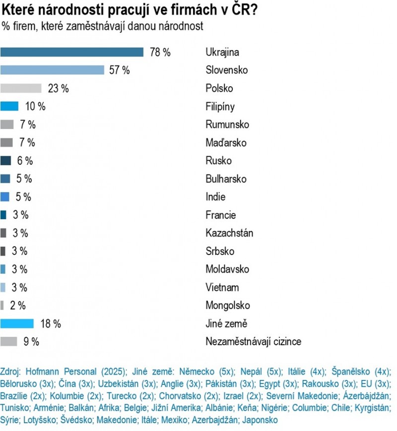 29.1. - Personální společnost Hofmann Personal (Hofmann Wizard, s. r. o.) otevírá ve spolupráci s filipínskou agenturou H.M.O. International Recruitment společnou kancelář v Manile na Filipínách. Projekt vznikl pod záštitou Svazu průmyslu a dopravy ČR (SP ČR) a reaguje na dlouhodobý a prohlubující se nedostatek pracovní síly na českém trhu práce. Podle průzkumu Hofmann Personal MONITOR 2025 dokonce 59 % výrobních firem hlásí nedostatek kvalifikovaných zaměstnanců, tedy chybí v 6 z 10 výrobních firem. Kancelář v Manile tímto firmám přináší praktické a dlouhodobě udržitelné řešení v klíčových oborech ekonomiky.