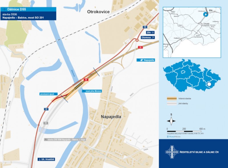 „Jedná se o ocelový jednopolový most, jehož nosná konstrukce je společná pro oba směry budoucí dálnice. Most bude realizován v předstihu před dálničním úsekem mezi Napajedly a Babicemi jednak z důvodu špatného stavu současného mostu na silnici I/55, ale také aby byl co nejdříve ukončen stav, kdy musí řidiči sjíždět z dálnice přes kruhový objezd u čerpací stanice, kde se zejména ve špičkových časech tvoří kolony. Most bude zprovozněn v roce 2025,“ uvedl při zahájení stavby generální ředitel ŘSD Radek Mátl.