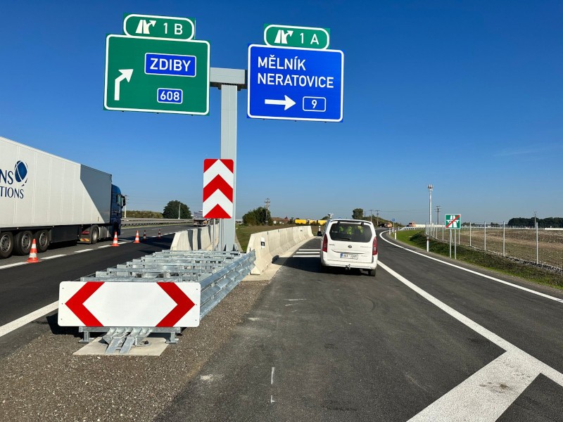8.9. - Ředitelství silnic a dálnic (ŘSD) dnes zprovoznilo stavbu „D8 MÚK Zdiby, II. etapa“, což představovalo realizaci výjezdové větve z dálnice D8 na silnici I/9 ve směru na Mělník. Došlo tak k odstranění výrazného kolizního bodu na MÚK Zdiby (EXIT 1), kde se denně tvořily velké kolony. Výjezdovou větev využije každý den až 9 tisíc vozidel.