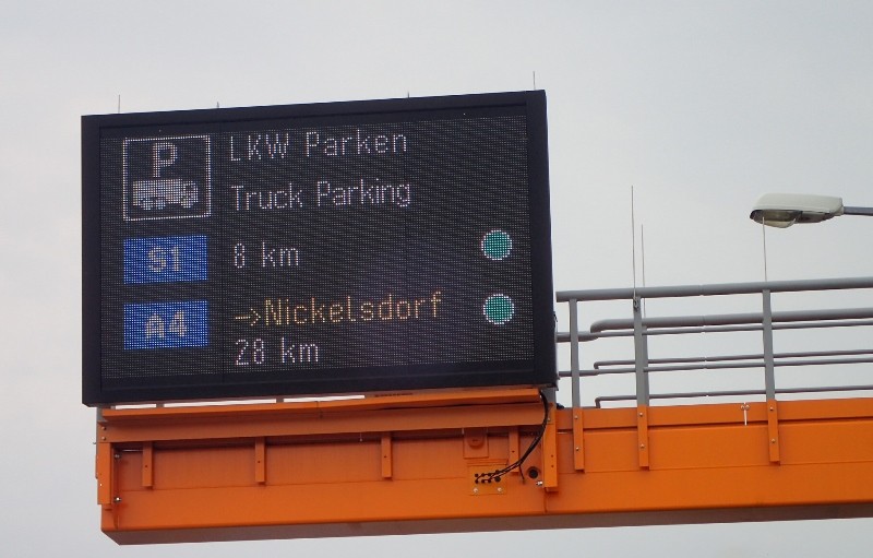 Na celkem 135 velkých proměnných tabulích na dálnicích a rychlostních silnicích, které informují v reálném čase řidiče nákladních vozidel o volných místech na odpočívkách, provozuje v současné době rakouská silniční správa ASFINAG.