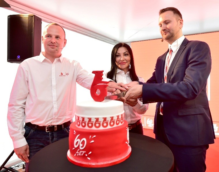 Fotografie: Slavnostní dort rozkrojili Marek Zouvala, vedoucí odštěpného závodu Benzina skupiny Unipetrol, Agnieszka Bobrukiewicz, vedoucí marketingu Benziny, a Tomasz Wiatrak, místopředseda představenstva skupiny Unipetrol zodpovědný za retail a corporate governance.