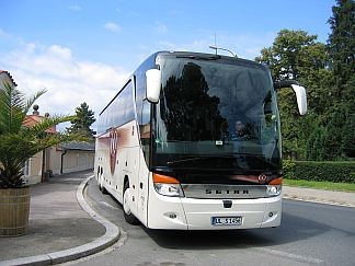 Třínápravový model S 416 HDH, který jsme si mohli vyzkoušet, nabízí padesáti cestujícím pohodlné místo v tmavohnědých sedadlech Voyage Plus, která mají podhlavníky a lemování z kůže. Dekorativní díly pracovního prostoru řidiče, jako například kožený volant, mají matnou barvu hnědého javoru. Také sedadla řidiče a spolujezdce mají hnědé bočnice a jsou lemována béžově.
