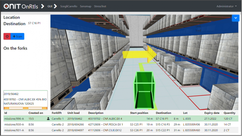 Dalším rozšiřujícím modulem je FGS. Znamená přímé napojení Dragonfly na WMS a díky doplňkovým čidlům (detekce břemene na vidlicích + čidlo výšky zdvihu vidlic) má uživatel k dispozici 3D prostor s digitálním dvojčetem nejen pro každý vozík, ale také pro každou paletu ve svém provozu.