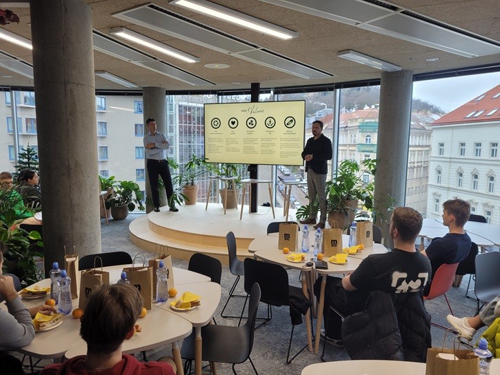 Jednou z takových akcí se stala v listopadu návštěva v sídle firmy MSC, které se přednostně zúčastnili studenti kursu Mezinárodní přeprava a zasílatelství. Přednášky se ujali kolegové z MSC Martin Nováček a Tomáš Rohla, kteří provedli nejen prezentaci o činnosti firmy, kde se zaměřovali především na aktuální trendy (hojně diskutovaná udržitelnost a další), ale i konkrétních situací, které bylo a je třeba řešit, včetně např. smutně proslulé „suezské krize“ (uváznutí lodě v kanále v roce 2021) nebo vypořádání se s pandemií covidu, objízdných námořních tras apod. Během interaktivní přednášky probíhala diskuse s četnými otázkami našich studentů. Po prezentaci následovala prohlídka sídla firmy, které sídlí v pátém a osmém patře budovy Green Point na pražském Andělu, s dalším souvisejícím výkladem o jednotlivých pracovištích. Pro studenty bylo mj. zajímavé setkání s dvacetistopým kontejnerem, který je umístěn v rámci odpočinkového prostoru společnosti v osmém patře budovy.