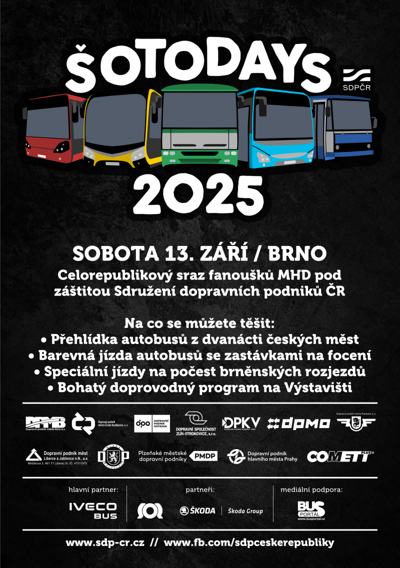 16.8. - V sobotu 13. září 2025 se Brno znovu promění v hlavní město všech milovníků městské dopravy. Po úspěchu nultého ročníku v roce 2023 se vrací akce ŠOTODAYS – celorepublikový sraz šotoušů, nadšenců, řidičů, dopravních fajnšmekrů i široké veřejnosti. Letos bude program ještě bohatší, jízdy ještě zajímavější a přehlídka vozů ještě rozmanitější.