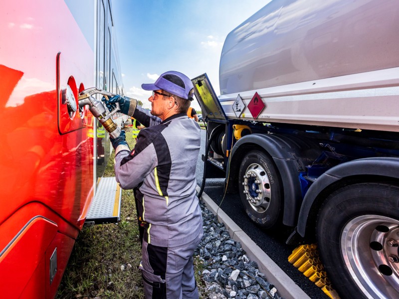 Foto: České dráhy - tankování bionafty do jednotky RegioFox v barvách PID