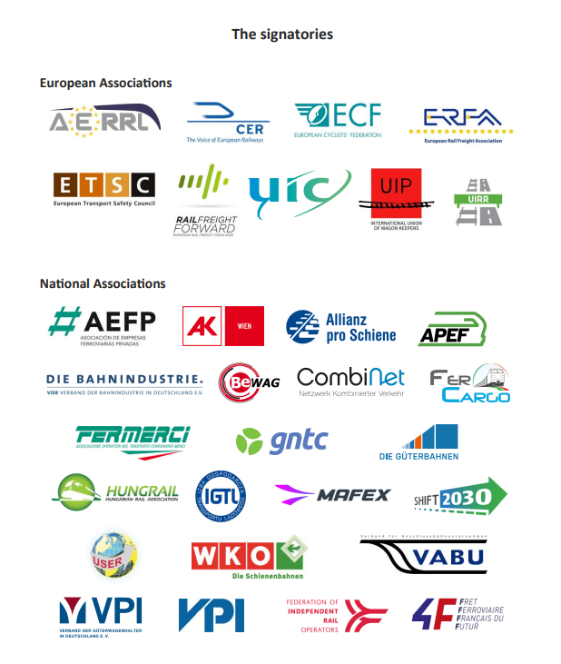 24.2. – „Probíhající revize směrnice o hmotnostech a rozměrech by se měla zaměřit na podporu zavádění silničních vozidel s nulovými emisemi způsobem, který bude plně v souladu s cíli politiky EU v oblasti klimatu a dopravy, a zároveň bude chránit silniční infrastrukturu a železniční nákladní dopravu a kombinovanou dopravu. Současné postoje Evropské komise, Evropského parlamentu a Rady však obsahují prvky, které hrozí otevřením dveří širšímu zavádění delších a těžších vozidel – tzv. evropských modulárních systémů (megatrucky nebo gigalinery). To vyvolává vážné obavy a je v rozporu jak se zájmy občanů EU, tak s cíli interoperabilního a intermodálního evropského dopravního systému.“ Ve společném prohlášení to uvedly evropské železniční svazy a firmy (viz titulní foto signatářů prohlášení).