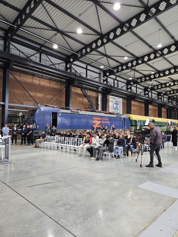 2.10. - První říjnový den roku 2025 se nesl v duchu železniční dopravy. Sdružení železničních nákladních dopravců ŽESNAD.CZ a přední evropský výrobce výhybek DT – Výhybkárna strojírna ve spolupráci se Správou železnic, Oltis Group, City Rail a Siemens Mobility si pro studenty středních odborných škol z několika českých měst připravily zajímavou exkurzi do prostějovské firmy DT – Výhybkárna a strojírna s bohatým interaktivním programem a jízdou eventovým vlakem společnosti Kladenská dopravní a strojní.